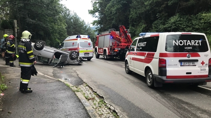 Bei einem Verkehrsunfall in Leoben, verletzte sich eine Person, dessen Fahrzeug sich überschlagen hatte.