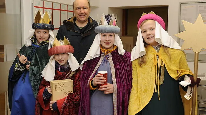 Sternsinger besuchten die Redaktion Leoben der Kleinen Zeitung: Selina Winkelmayer, Jana Leitgeb-Spörk, Vanessa Oswald, Sarah Reiter (von links), Karl-Heinz Schein