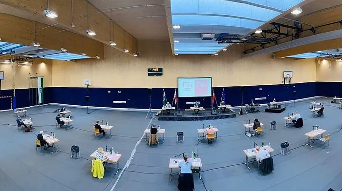 Die jüngste Leobener Gemeinderatssitzung fand in der Sporthalle Donawitz statt, um genügend Abstand halten zu können