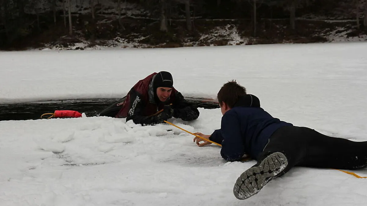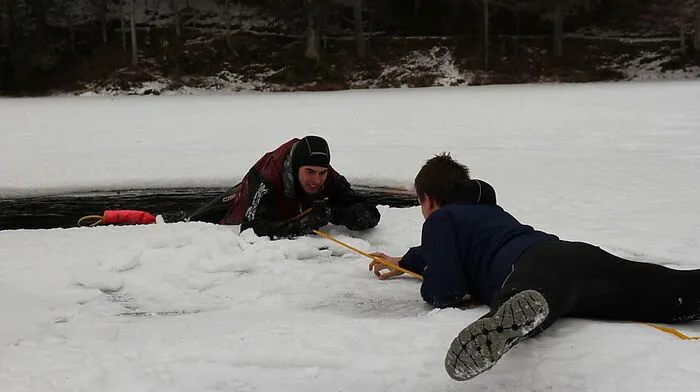 So rettet man eingebrochene Eisläufer aus den kalten Fluten