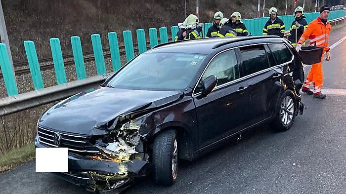 Auf Höhe der Raststation Kammern kam es am Donnerstagnachmittag zu einem Unfall, an dem ein Kleinbus und ein Pkw beteiligt waren. Es gab keine Verletzten, vier Feuerwehren waren im Einsatz.