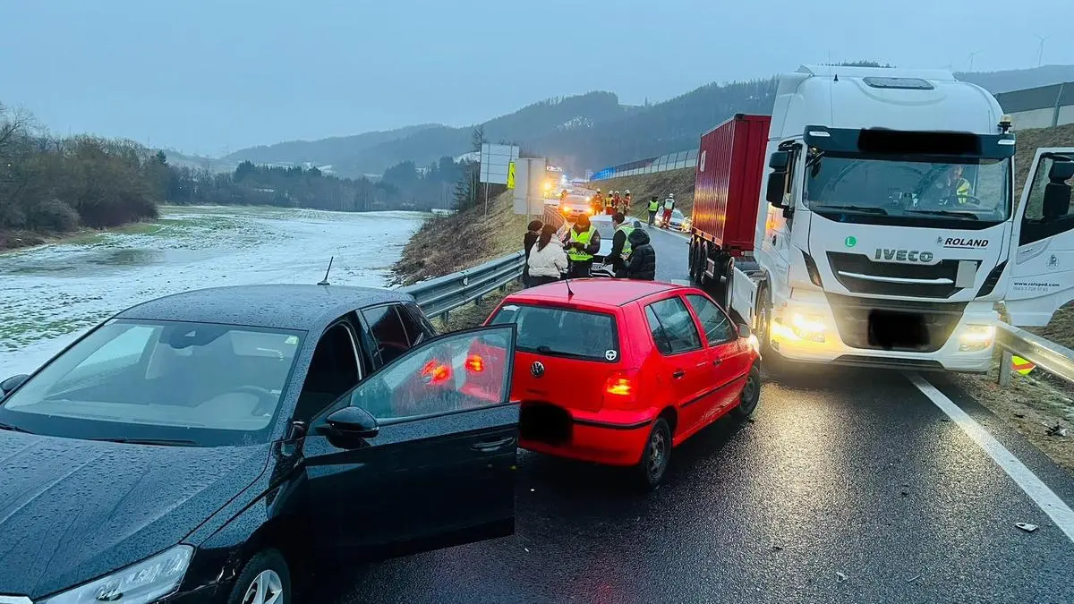 Blitzeis sorgte am Freitag für einen massiven Verkehrsunfall auf der S6. Bei der Abfahrt Kindberg-Ost kollidierten neun Fahrzeuge.