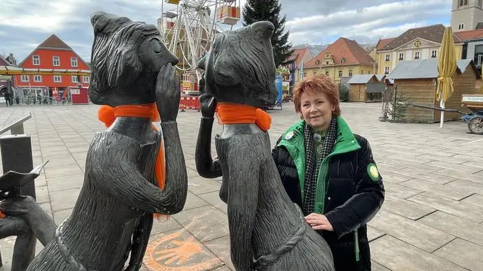 Warum diese Skulpturen am Brucker Hauptplatz jetzt Orange tragen