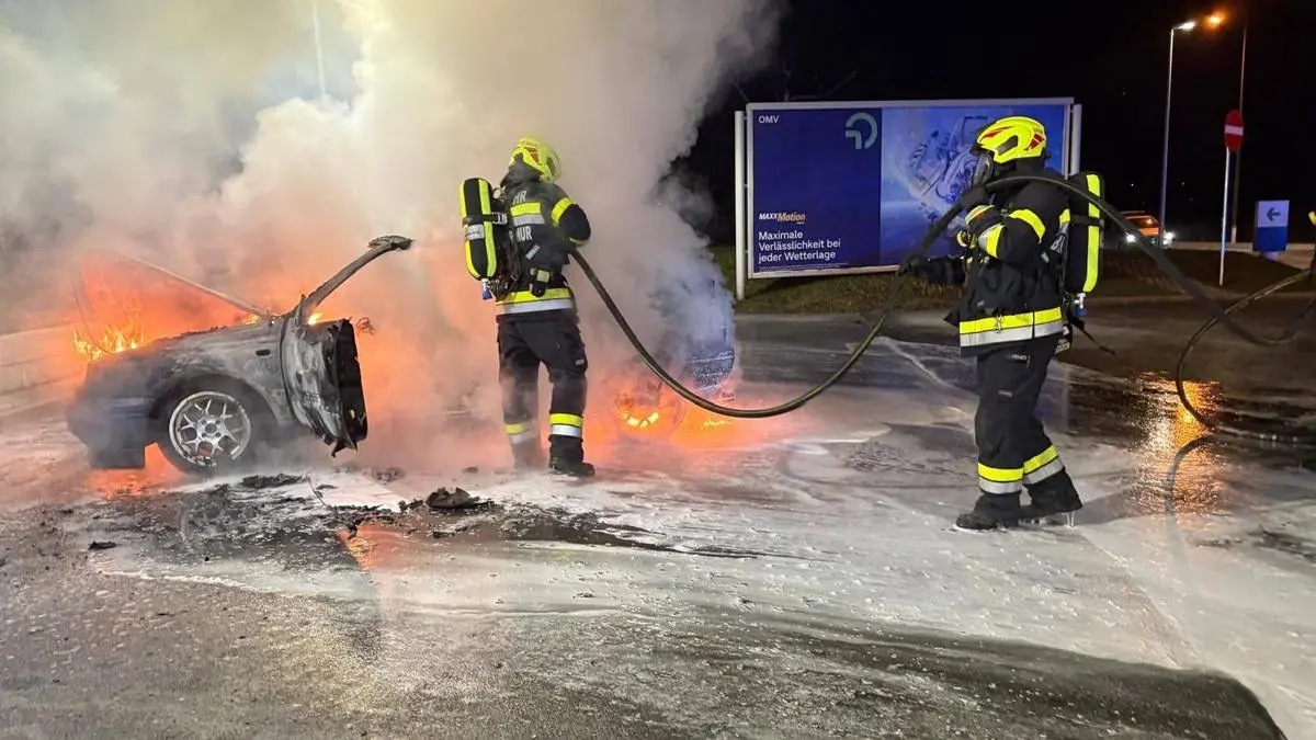 Gegen 17.40 heulten am späten Dienstagnachmittag die Sirenen: Bei einer Tankstelle in der Leobner Straße war ein Auto in Vollbrand geraten. Der 59-jährige Lenker konnte den Pkw im Bereich der Staubsauger noch abstellen und das Fahrzeug unverletzt verlassen.