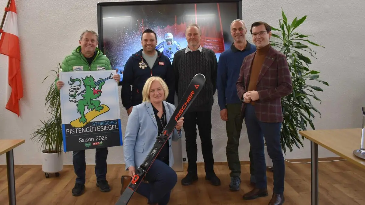 Erwin Rossmann (Schwabenbergarena, v.l.n.r.), Matthias Puregger (WSV Turnau), Johann Fellner (Steirischer Seeberg), Hannes Payer (Eichfeldlift), Stefan Hofer (Bürgermeister), Gitti Fladl (Tourismusbeauftragte, vorne)