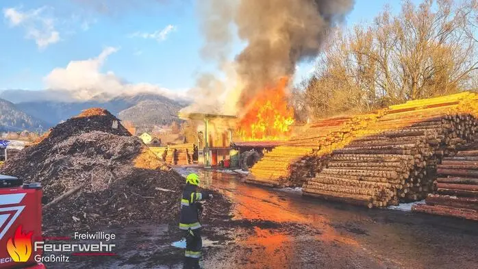 Kampf gegen Flammen: Werkstattbrand in Sägewerk