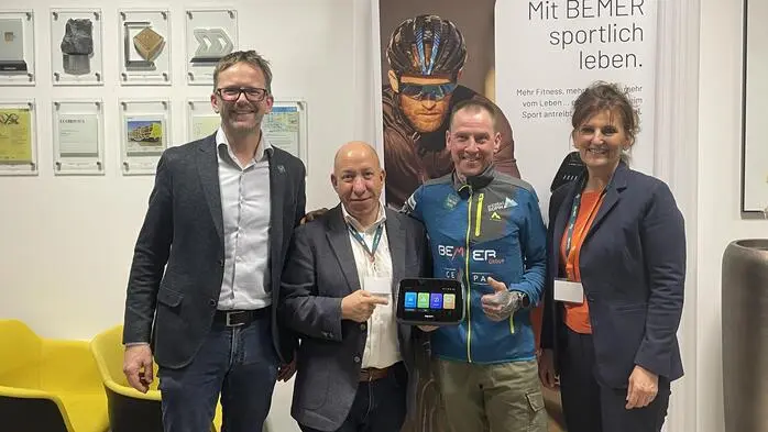 Andreas „Rambo“ Ropin mit zwei seiner Sponsoren der Firmen Bemer und Towern3000