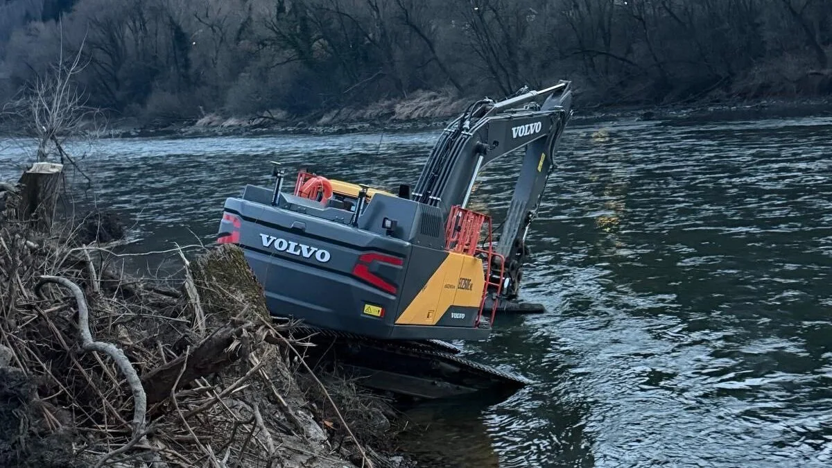 Bagger hat nach technischem Defekt Betriebsmittel verloren