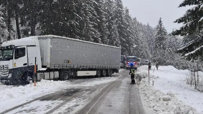 Lkw blieben bei Schneefall am Alpl und am Lahnsattel hängen