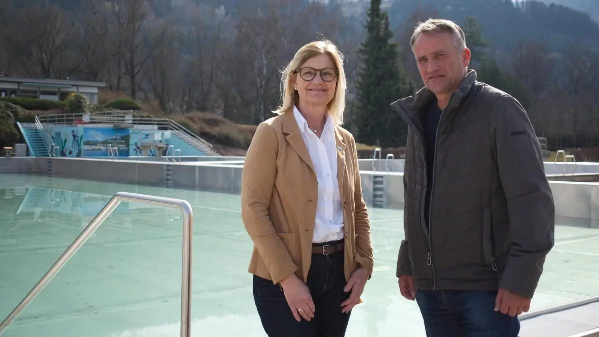 Bis man sich wieder ins kühle Nass stürzen kann, dauert es zwar noch ein wenig, dennoch erlangte das städtische Freibad kürzlich größere Bekanntheit. Im Rahmen des ORF-Formats „Dok1“ sprachen Hanno Settele und Bürgermeisterin Susanne Kaltenegger dort über die maroden Finanzen der Stadt – und über den Denkmalschutz. Unter diesem steht das Freibad nämlich.