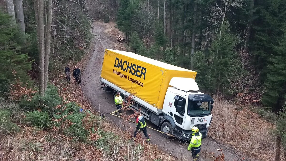 Lkw kam von Fahrbahn ab: Mehrere Seilwinden für Bergung benötigt