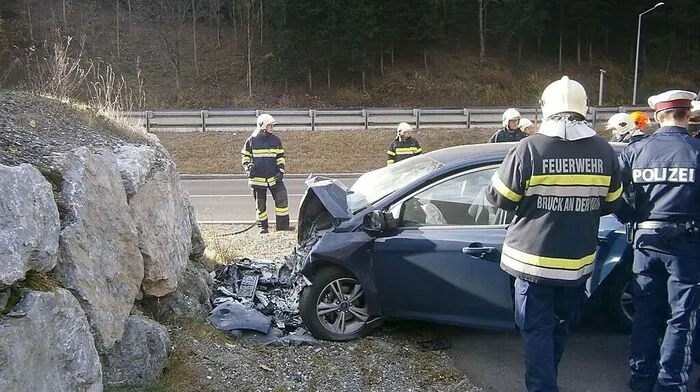 Autolenker kam in Zlatten, Gemeinde Pernegg, von der Fahrbahn ab und prallte frontal gegen eine Steinmauer.