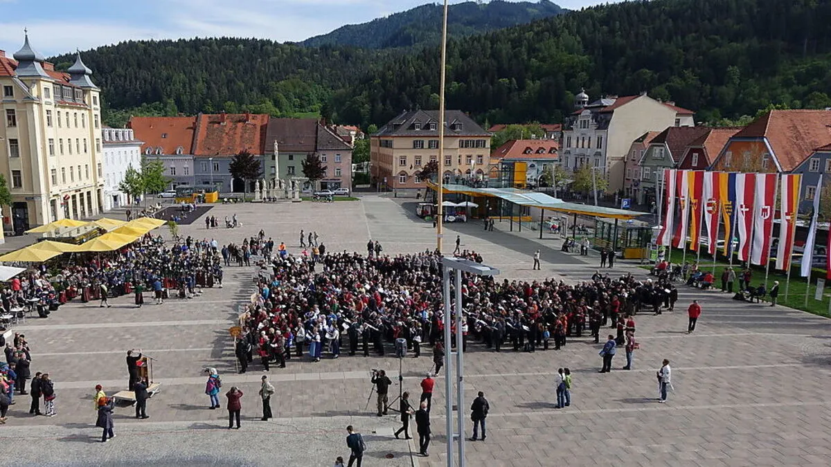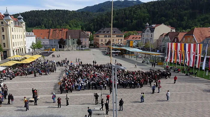 125 Jahre Österreichischer Arbeitersängerbund sind der Anlass für ein großes Drei-Tage-Fest in Bruck. Ein Höhepunkt war der Sternmarsch von 800 Sängerinnen und Sängern zum Koloman-Wallisch-Platz.