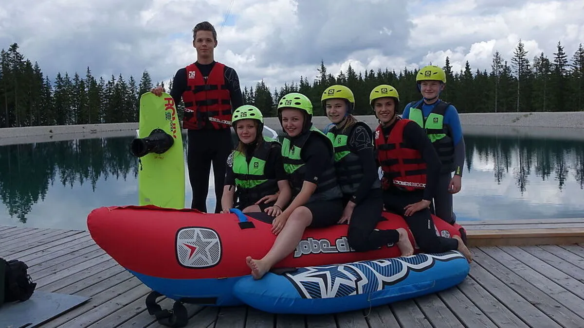 Seiten durften die Forstschüler am Kristallsee mit dem Wakeboard fahren. Von Martina Pachernegg