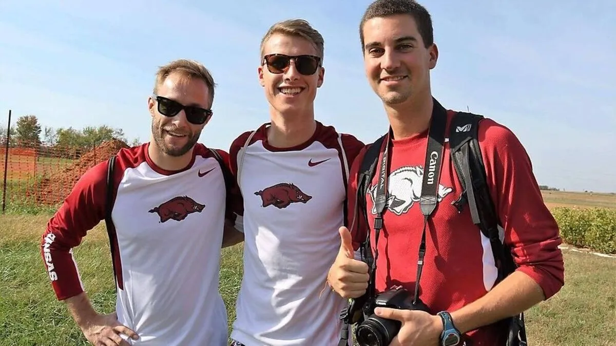 Uwe Holli (rechts) mit zwei Besuchern aus der Heimat: Stefan Pretterhofer (links) und Valentin Schneider, beide ebenfalls Leichtathleten