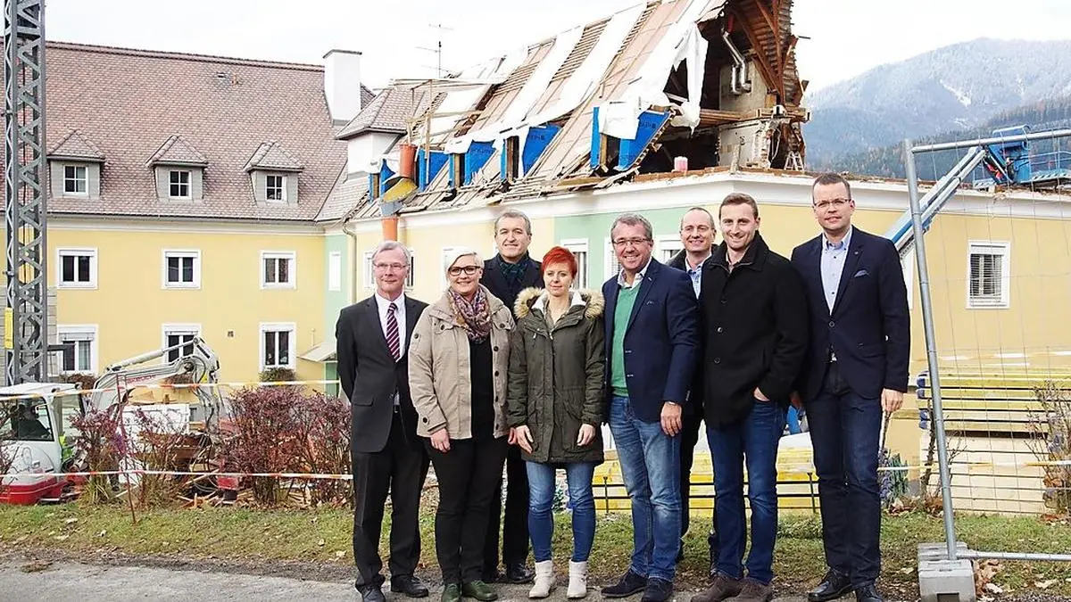 Baustelle mit vielen Bauherren: Heimleiter Peter Krebs, Pflegedienstleiterin Simone Schöggl, Bgm. Karl Rudischer, die SHV-Geschäftsführung mit Petra Scheucher, Peter Koch und Oliver Wunsch, SHV-Obmann Jochen Jance und SHV-„Bauchef“ Markus Otter (v. links)