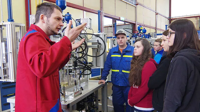 Ausbildner und Lehrlinge erklären den Schülern die verschiedenen Berufe