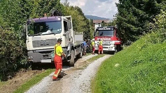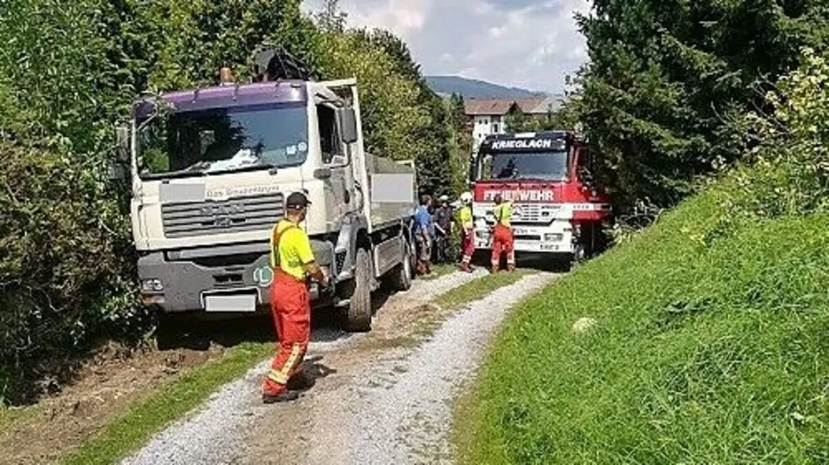 Ein Lkw kam in Krieglach von der Fahrbahn ab, die Bergung dauerte knapp viereinhalb Stunden.