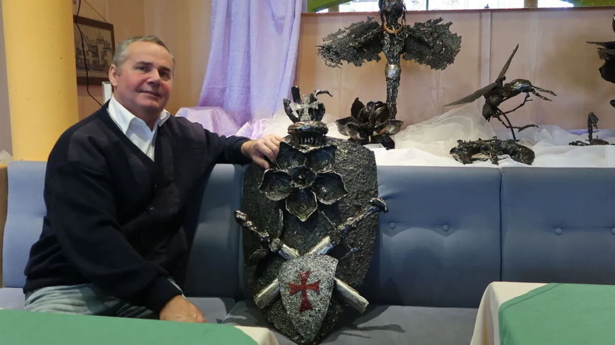 Rainer Meister fertigt Skulpturen aus Abfall der Stahlproduktion im Werk Breitenfeld.