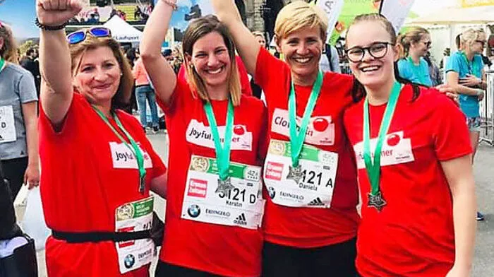 Vier Damen der C&A-Filiale Mürzzuschlag nahmen am Wien-Marathon teil und unterstützten dabei die Rote-Nasen-Clowndocters.