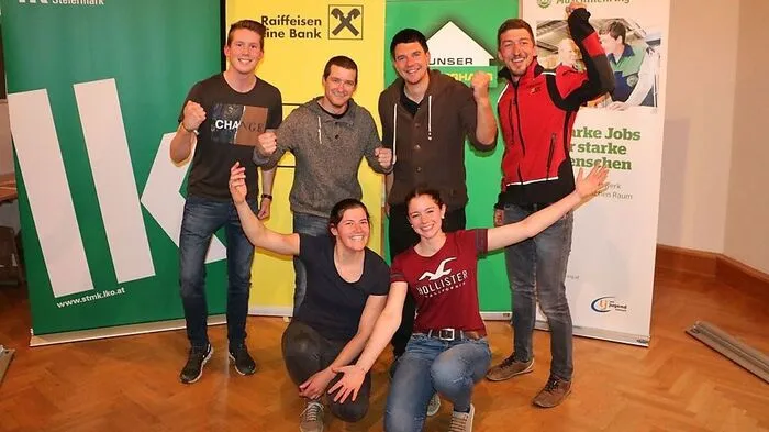 Beim Bundesentscheid: Barbara Rinnhofer und Magdalena Kalcher (vorne), Markus Buchebner, Christian Rinnhofer, Dietmar Wöls und Matthäus Edegger