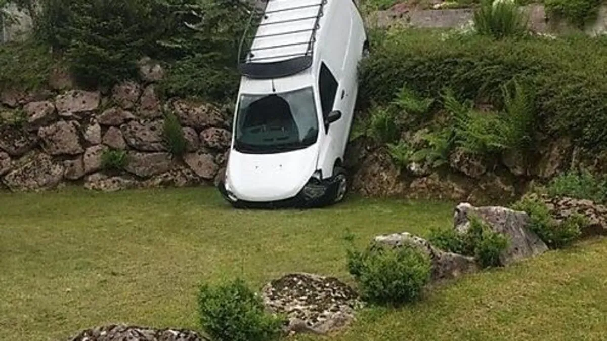 Transporter stürzte über Steinmauer