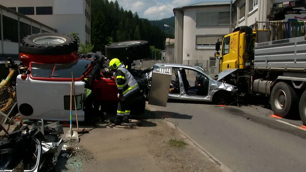 Bei einem Unfall in Wartberg im Mürztal kam es zu einer Kollision zwischen einem Lkw, einem Pkw und einem Traktor, bei der zwei Personen, eine davon schwer, verletzt wurden.