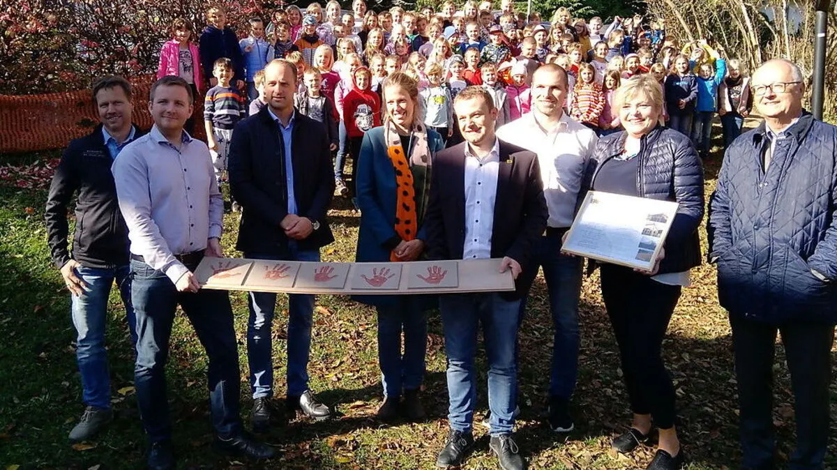 Gleichenfeier beim Um- und Zubau der Volksschule in Pernegg-Kirchdorf. Der Turnsaal wird bereits im November wieder benützbar sein.
