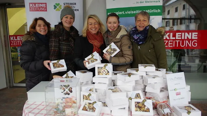 Gebacken haben die Kekse Bäuerinnen aus dem gesamten Bezirk Bruck-Mürzzuschlag. Da wurde vorab untereinander über die besten Rezepte gefachsimpelt, über Keksgrößen und Dekor diskutiert und Verpackungsmöglichkeiten ausprobiert. „Es ist gar nicht so einfach, alles unter einen Hut zu bekommen. Aber es ist uns geglückt“, sagt Barbara Kiendlsperger, Fachberaterin der Landwirtschaftskammer Steiermark. Einen besonderen Beitrag unter all den Weihnachtskeksen hat die Großmutter der Neuberger Gemeindebäuerin Claudia Prasch geleistet. Sie hat ihr geheimes Rezept für Kletzenbrot herausgekramt und etliche Brotlaibe für die Benefizaktion gebacken. „Eine wunderbare Idee. Herrlich, dass sich die Damen so ins Zeug legen und kräftig mitanpacken. Jede Frau auf ihre Weise“, sagt Hörmann und rückt sich die gestrickte Haube zurecht. Beim Verkaufen gestern in der Früh war es schließlich doch noch recht frisch. „Eigentlich haben wir ja gar keine Zeit zum Frösteln gehabt, so schnell haben wir greifen müssen“, lacht sie. Eine Schachtel nach der nächsten ist in den Sackerln der Besucher verschwunden. Dabei wurde der Inhalt durch das Sichtfenster genau inspiziert. Schaumrollen, Linzeraugen oder Vanillekipferl standen hoch im Kurs. „Mein persönlicher Favorit ist ja der Lebkuchen“, schmunzelt Hörmann, während Bäuerin Grete Steinrieser auf Husarenkrapferl schwört.