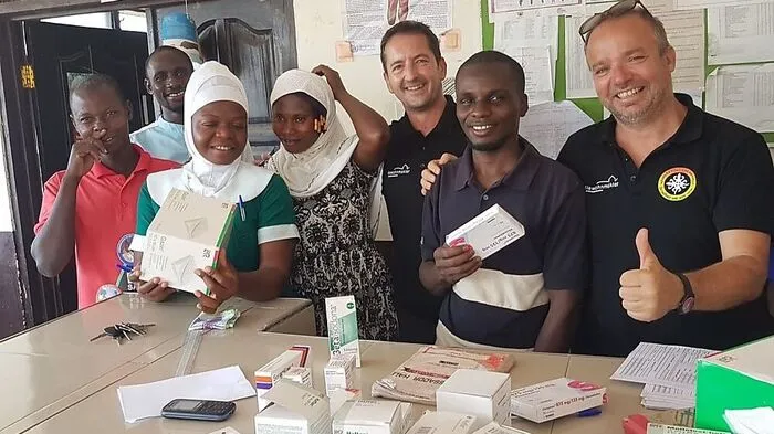 Jörg Ropin (4. v. l.) und Christian Reiss (r.) in Larabanga