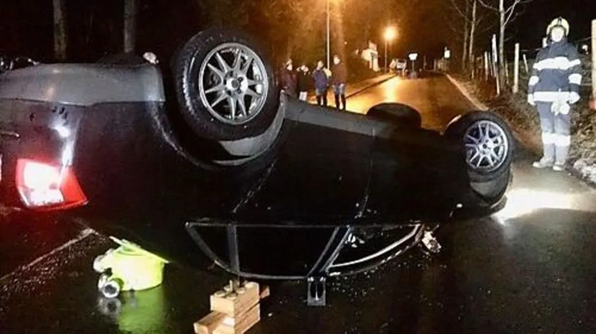 Aufgrund von Glatteis kam es am Dienstagabend in Bruck zu einem Verkehrsunfall, dabei landete ein Auto auf dem Dach.