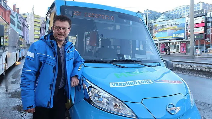 Gerhard Deutsch vor dem Kapfenberger Citybus der Linie 23
