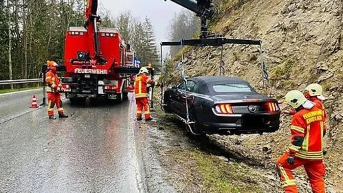 Feuerwehr befreite verunfallten Mustang aus Straßengraben