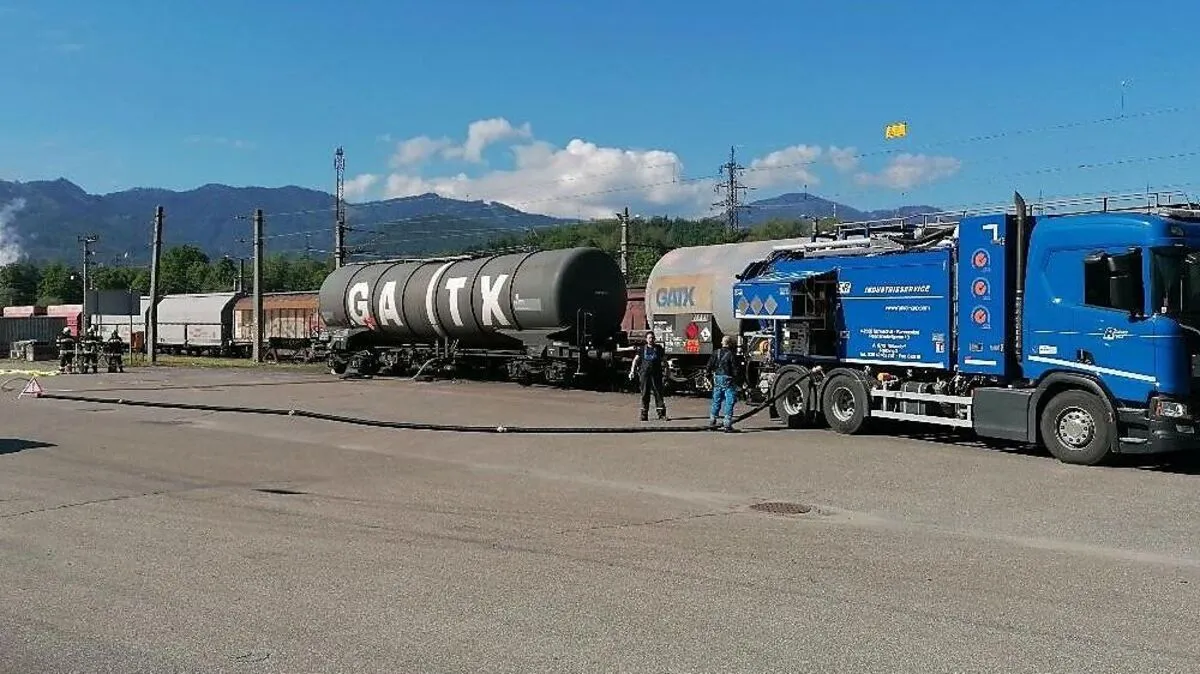 Die Freiwillige Feuerwehr Kapfenberg-Diemlach rückte am Montag zu einem ungewöhnlichen Einsatz aus. Sie hielten Brandwache beim Umpumpen eines defekten Kesselwagons.