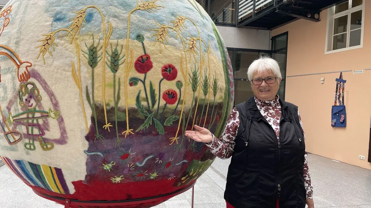 Bis Freitag sind im Rathaushof noch die bunten Werke der Brucker Künstlerin Hannelore Fasser zu sehen. Die Besucher will sie zum Nachdenken anregen, unter anderem auch Schulklassen.