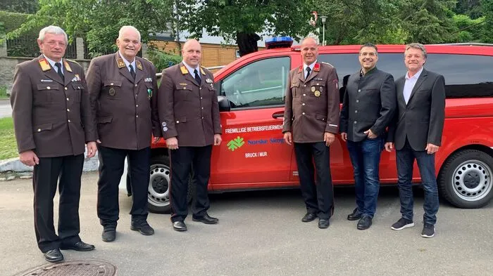 Rudolf Binder war 33 Jahre lang Kommandant der Betriebsfeuerwehr Norske Skog. Jetzt übergab er das Kommando an Jürgen Rachwalik, bisher Kommandant der FF Oberaich.