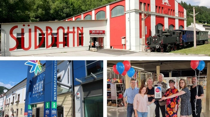 Das Südbahn- und das Wintersportmuseum kann man künftig auch per App erkunden, freuen sich Stadtchef Karl Rudischer und Museumsverantwortliche (rechts unten)