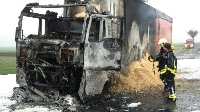 Aus bisher ungeklärter Ursache geriet Dienstagfrüh eine Zugmaschine eines Sattelzuges während der Fahrt bei Turnau in Brand. Verletzt wurde niemand, das Zugfahrzeug brannte vollkommen aus. Die Schadenshöhe steht noch nicht fest.