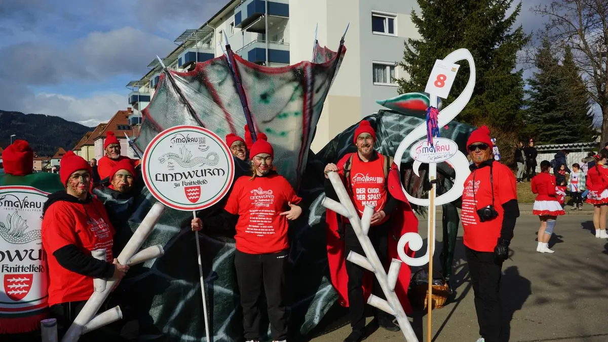 Furchterregender Lindwurm, tapfere Bürger und viele Zuschauer: Knittelfeld im Faschingsfieber