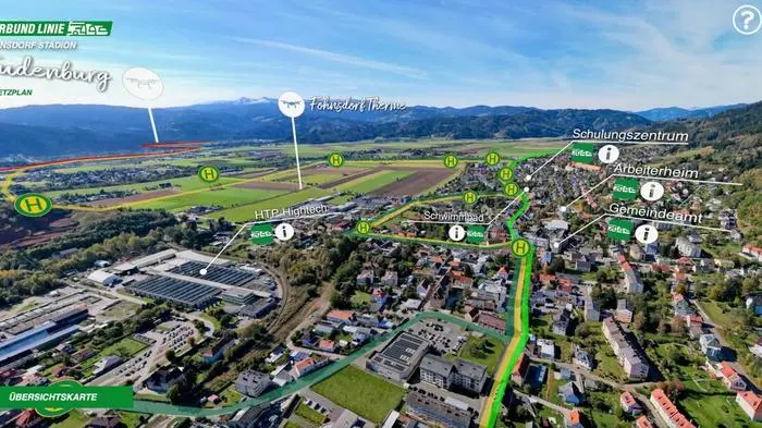 Einen Überblick über das Aichfeld von oben und Echtzeit-Informationen für jede Haltestelle liefert ein neues Projekt des Verkehrsverbundes Steiermark.
