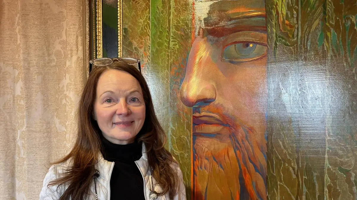 Silvia Hartleb vor dem Selbstporträt „Die goldene Nase“ von Ernst Fuchs