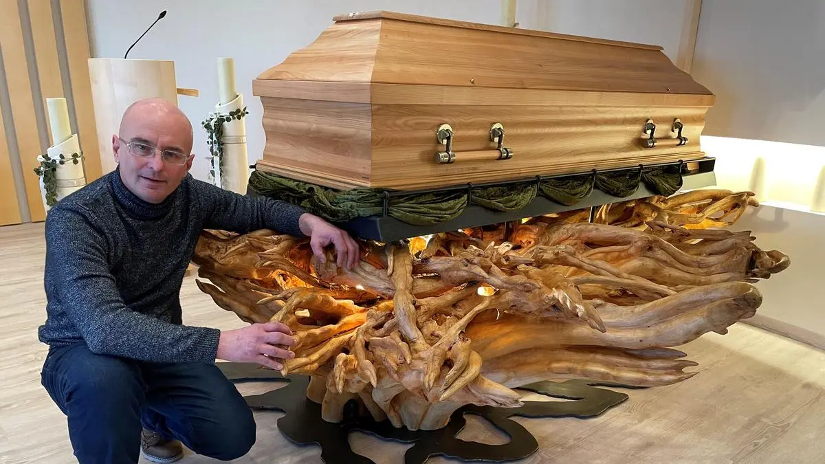 Sarg auf einer Wurzel: Ein Kunstwerk für die Ewigkeit