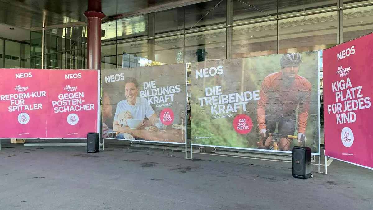 Plakate der Neos vor der Landtagswahl. Bei den Gemeinderatswahlen setzt man auf eine Onlinekampagne, um neue Mitglieder zu werben