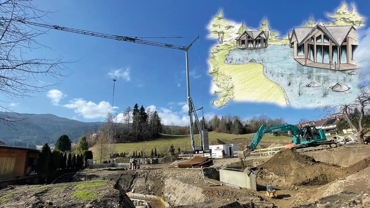 Ein Blick auf die Baustelle, wo die Teich-Lodges entstehen