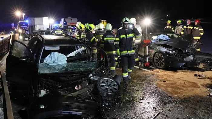Mithilfe eines hydraulischen Rettungsgeräts konnte die eingeklemmte Person aus dem Fahrzeug geholt werden. Gut zu tun hatte auch das Rote Kreuz, denn insgesamt wurden fünf Personen bei dem Unfall verletzt.