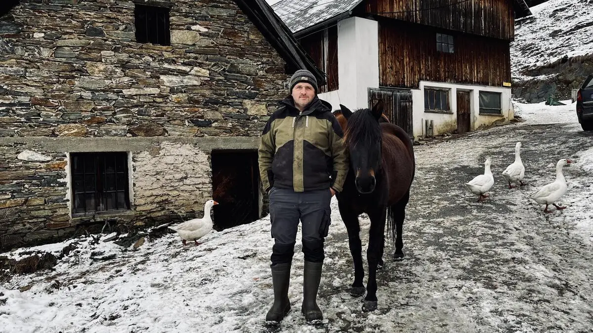Gänsehaut und Gänsemarsch: Christian Bachler auf seinem Hof in Krakauebene, bei eisigen Temperaturen