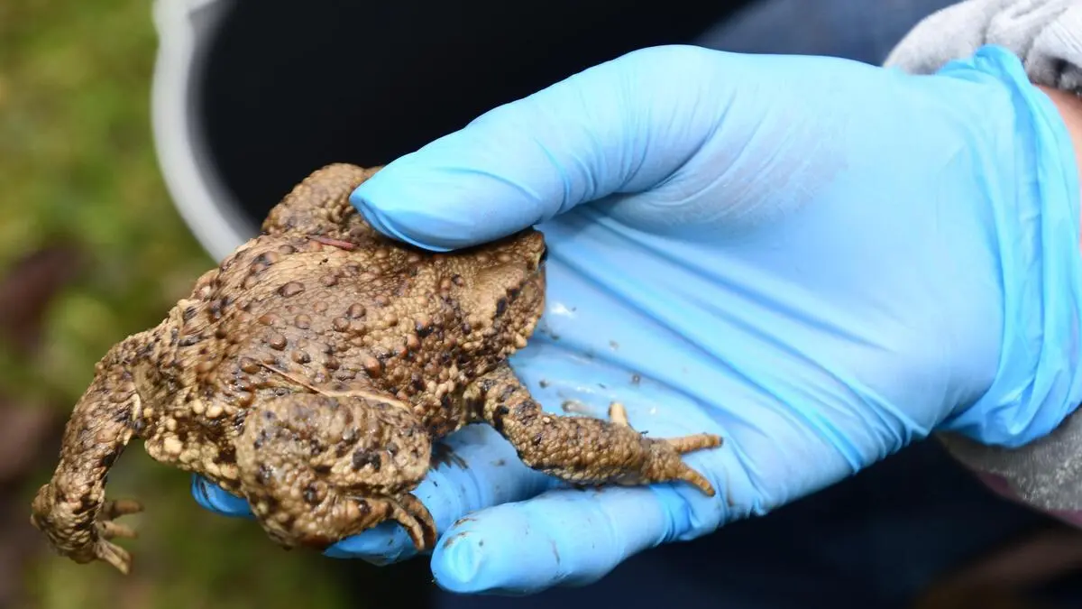 Ein Schutzzaun entlang der B92 schützt Kröten und Frösche vor dem Überfahren während ihrer Wanderung. Tausende Tiere können so gerettet werden.