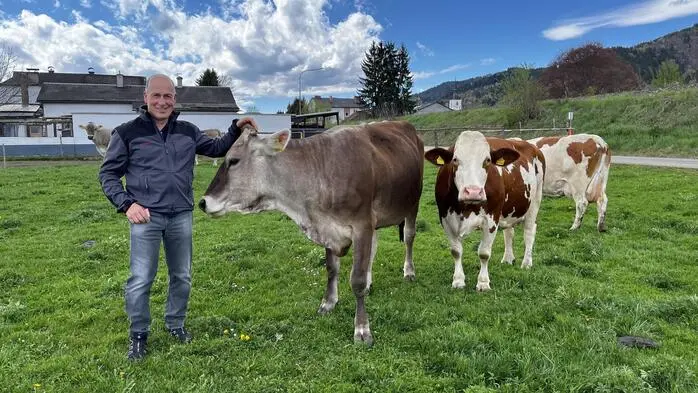Josef Schachner mit seinen Kühen auf der Weide in Fohnsdorf