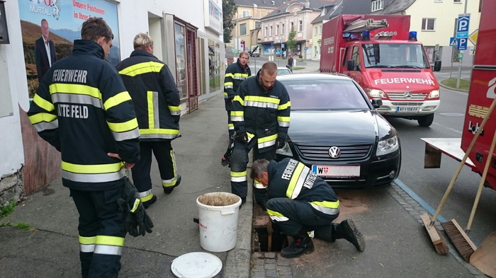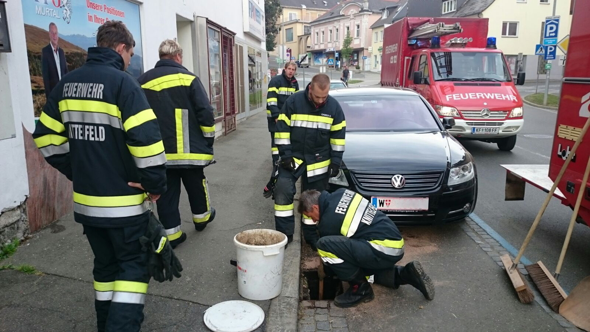 Zu einem Öleinsatz im Stadtgebiet wurden ehrenamtliche Mitarbeiter der Stadtfeuerwehr Knittelfeld Samstagfrüh alarmiert. Bei einem Pkw trat Öl aus dem Motorraum und drang in den Kanal ein.