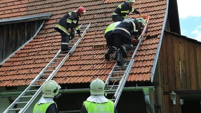 Zu einer Menschenrettung mussten am 22. August Feuerwehrleute von Knittelfeld und Spielberg ausrücken. Dachdecker stürzte bei seiner Arbeit ein und verletzte sich schwer. Feuerwehren bargen den Mann.